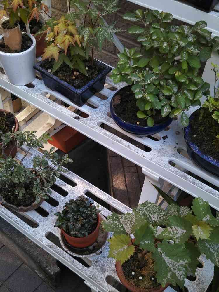 鹿児島市内では、未だに落葉樹の葉は青々しています。優しい新葉も見れます。しかし、紅葉が無く、枯れ果てます。今朝、今年から育て始めた子供たちが、雪ならぬ桜島の灰を被っていた。鹿児島の植物にとって天敵の一つ。盆栽園が無い原因か。