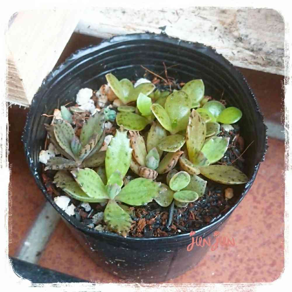 多肉のビニールハウスのポット販売に入っててんけど ほとんどのポットに不死鳥か紅稚児の芽があんねん(笑)