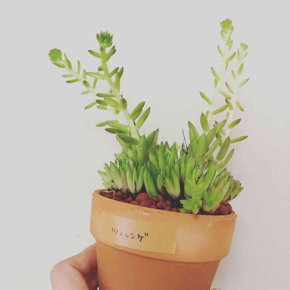 植え替え完了✨ツメレンゲ🌱お迎えした時よりにょきにょき伸びてきましたが、伸びてどうなるのかは謎です。