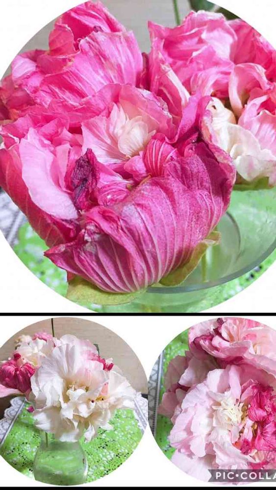 酔芙蓉左下から、朝の酔芙蓉さん、右下昼の酔芙蓉さん、上夜の酔芙蓉さん、ホントに色が変わって行ってます🤗💕💕💕