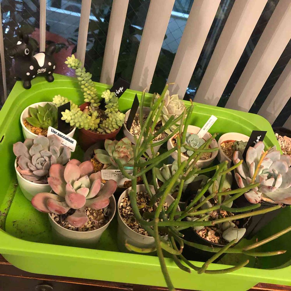 多肉好きで買っては枯らしている、永遠の初心者です🤣暑いリビングが原因かもと、2018.5より西側の屋根もない過酷なバルコニーで育ててます😅