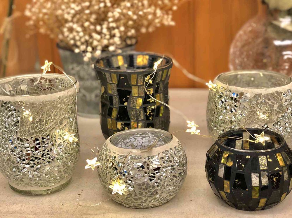 新しく入荷した花瓶に、電池式のLEDライトを飾りました。