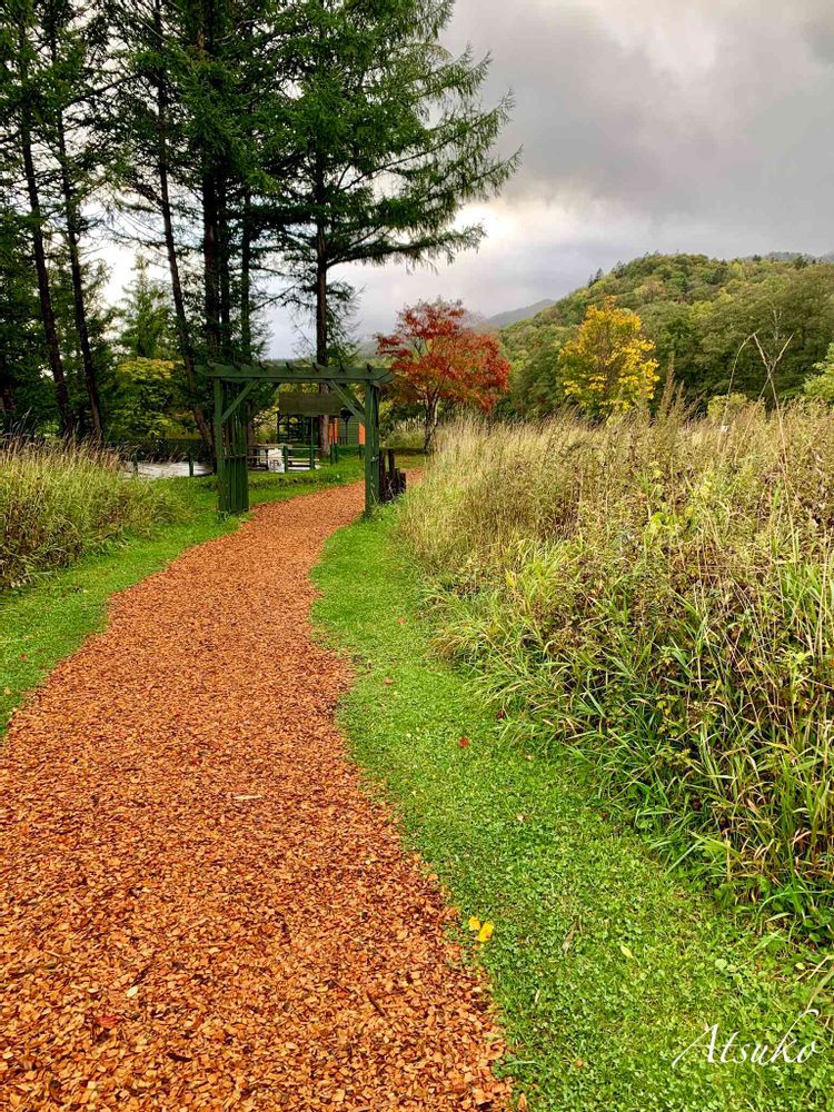風のガーデンは鮮やかで足にも優しいウッドチップコース