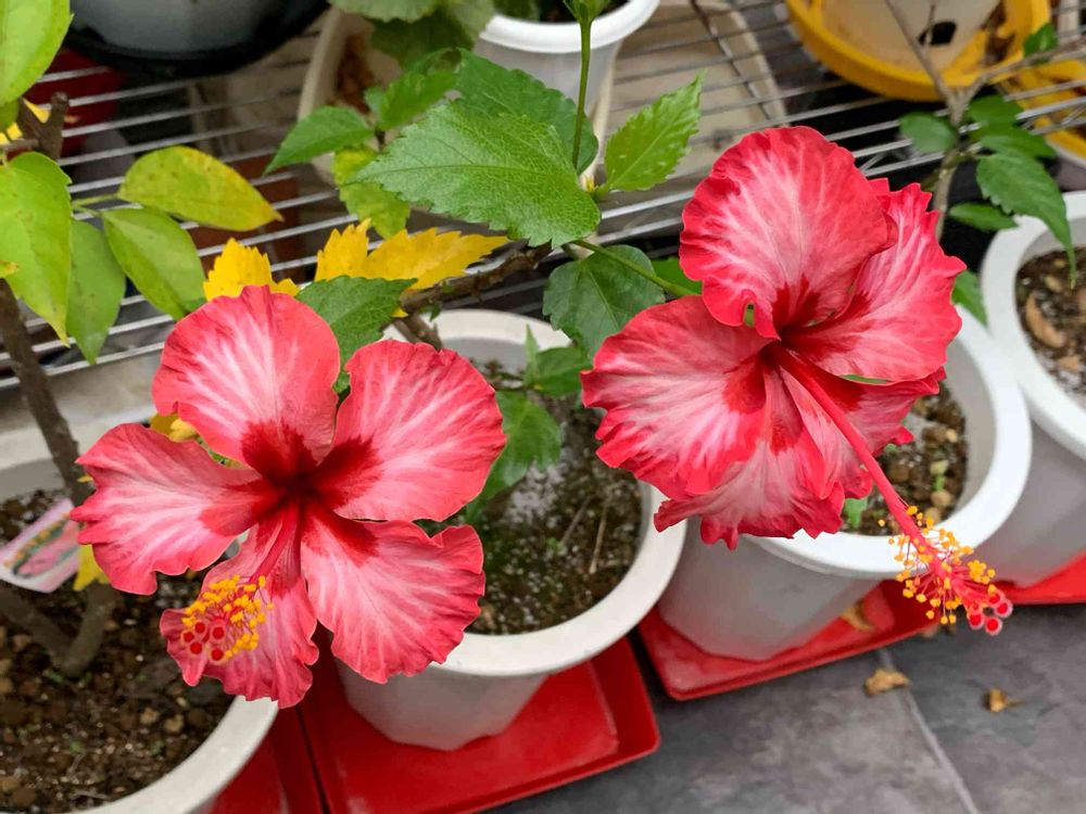 ハイビスカス、レッドマジックさんです。寒くなり、赤から色変わりです😊
