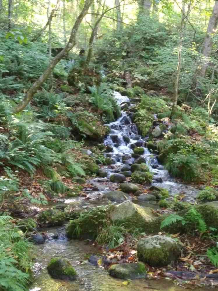 山の斜面より、小さな滝
