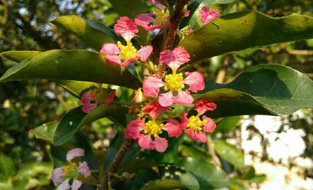 最近日本でも夏場に園芸店でよく見かけるアセロラです。園芸書によれば、植物ホルモンのジベレリンをかけないと結実しにくい様にも書かれていますが、当地ではジベレリン処理は、初開花から2回までで、あとは放っといても年中咲いてボコボコ実ってます。