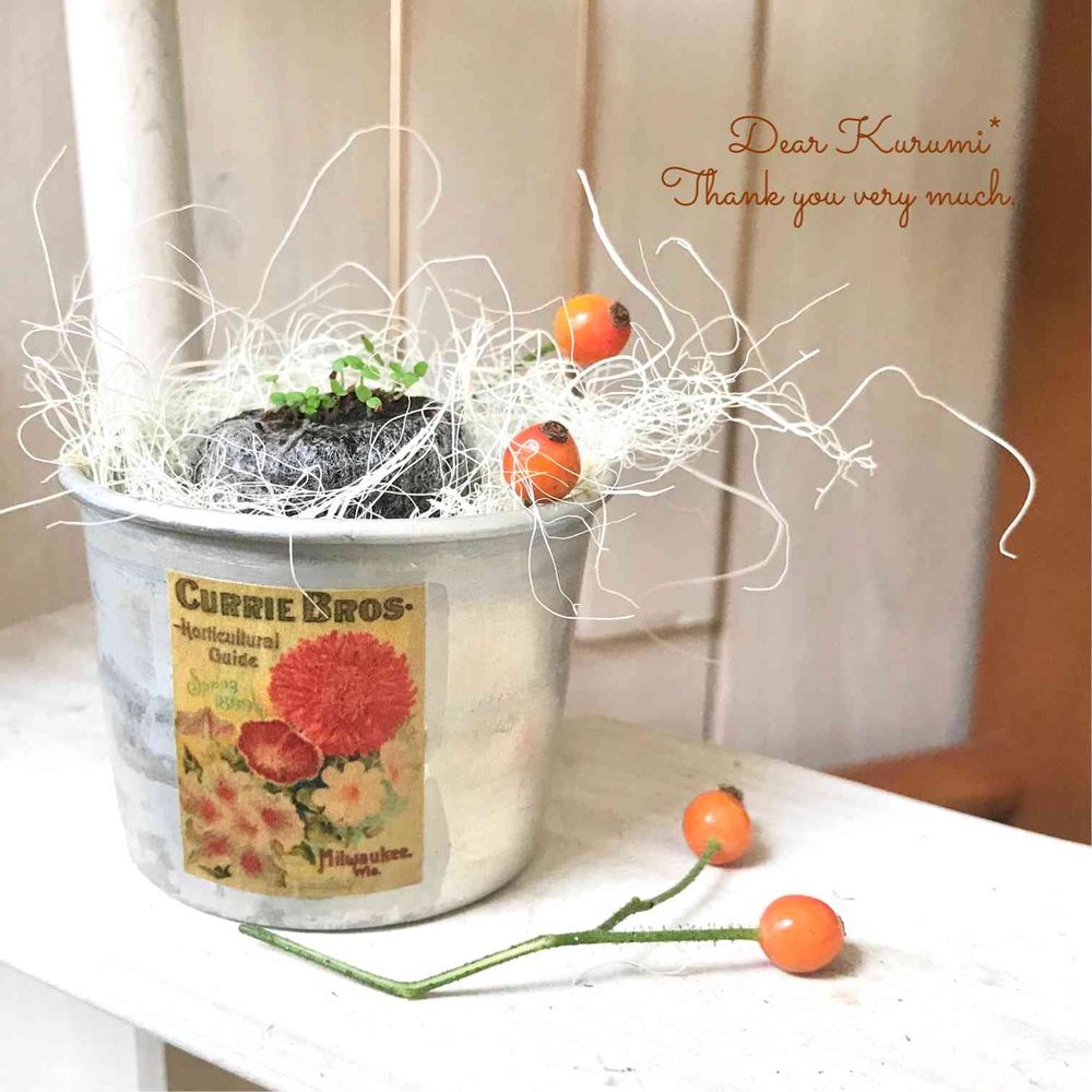 くるみ*さ〜〜〜ん、素敵なプレゼントありがとうございました❣️ 春にバラとコラボして咲いてくれたらいいなぁ〜*・° (艸′v'★*)。✨🌿🌹✨