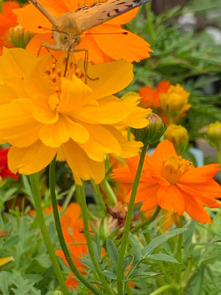 ミポリンさんのお出かけ先,黄色コスモス,ひょうもんちょうの投稿画像