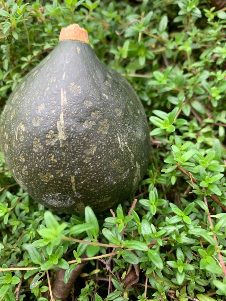 こんなにちっちゃなカボチャが出来てました😆タイムの葉っぱと一緒に