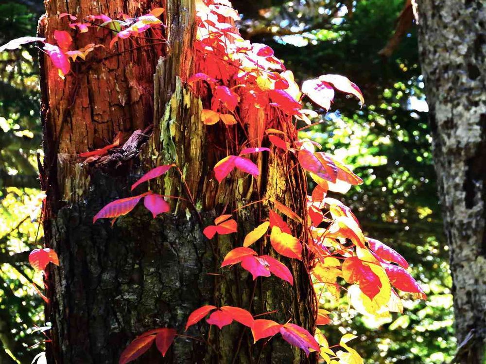 秋の彩りに欠かせないナツヅタの鮮やかな紅葉🍁🍁自然の芸術