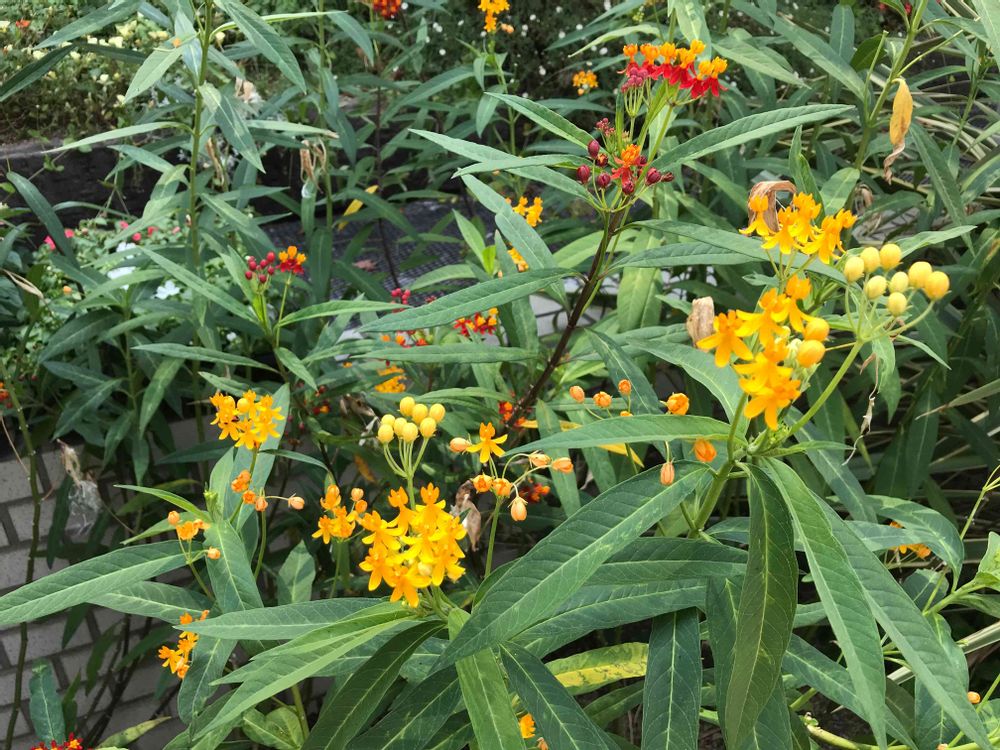 9月 ランタナのようにオレンジと赤い花が混在しています
