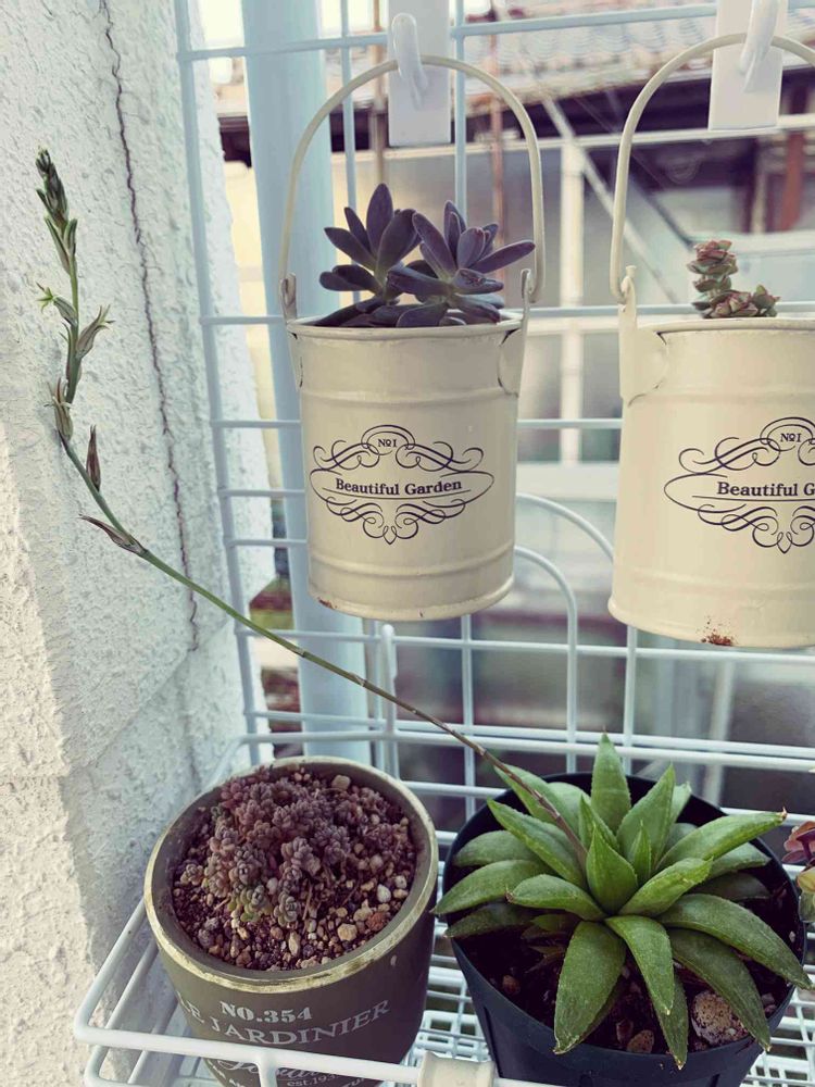 この子、ハオルチアの仲間?かと思われますが、花芽がドンドン伸びて、強風にも耐え、可愛い花が咲きました🙆♀️