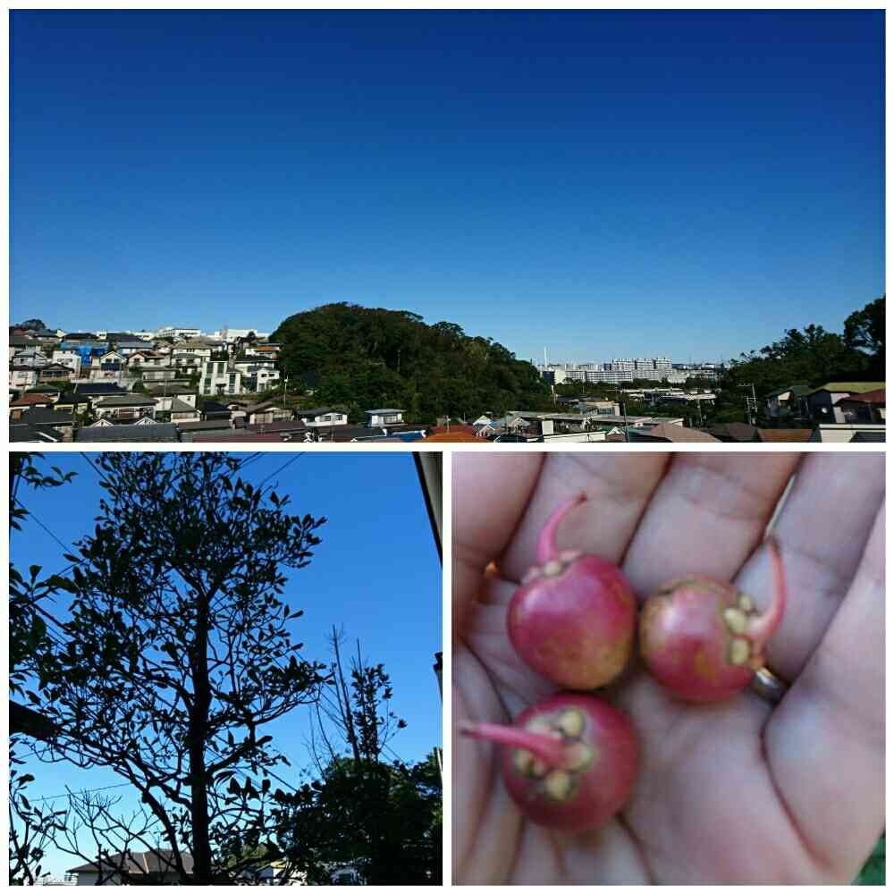 青空と落下したモッコクの実