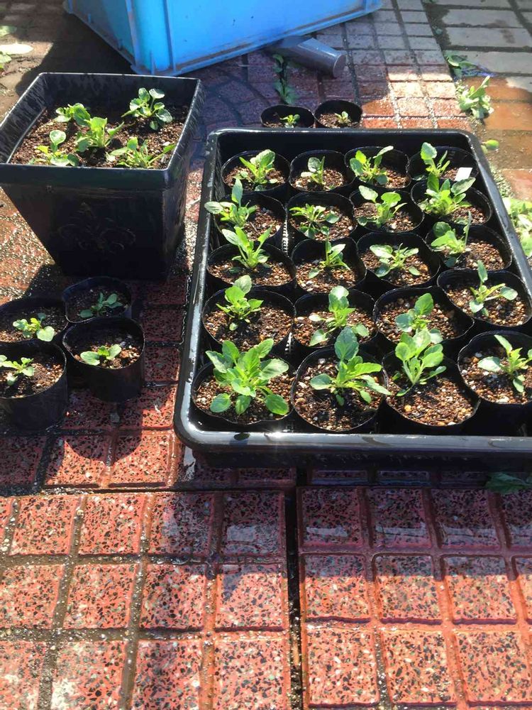 ビオラの鉢上げの作業中です。✌️