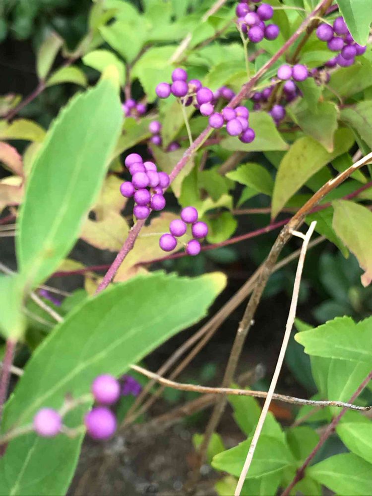 未だに、紫式部と小紫の判別に自信ありませんが。実の付き方から見て。多分、ムラサキシキブかと思います。