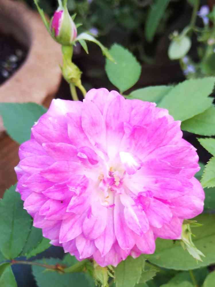 台風が通りすぎる間にミニバラが開花していました。良い香りのする花ですよ。