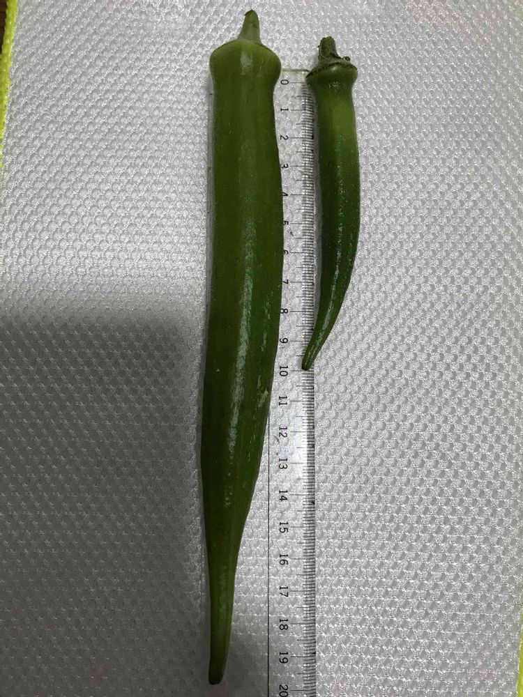 主人が実家の畑で お姑さんが届かなくて 放置だったオクラ約20センチ