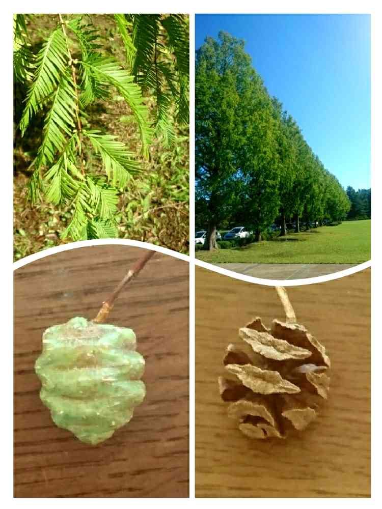 高い木の高い所に実るので、なかなか見られなかったメタセコイアの実ですが、台風🌀に落とされてしまったんですね。