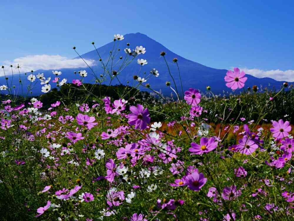 「富士山」と花は良く似合いますね!春の芝桜から始まり、夏のひまわり、秋のコスモスまで。