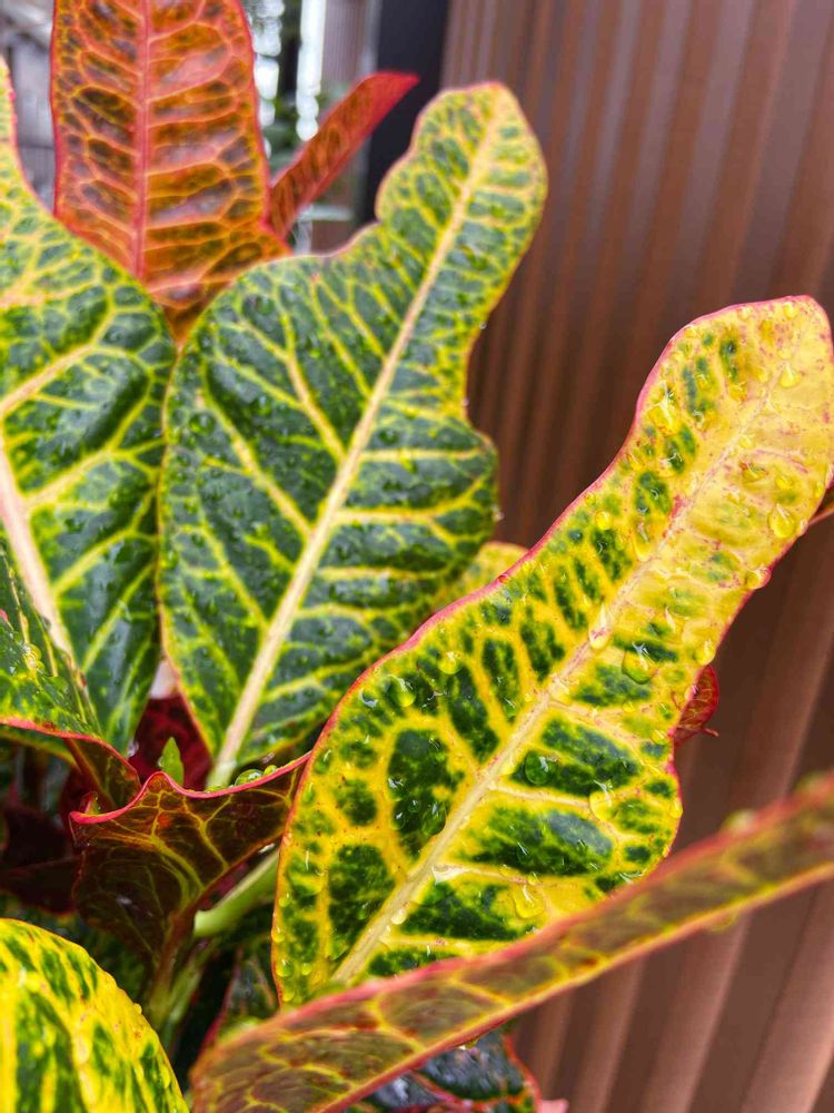 葉水をあげた時のクロトンはぴかぴかしていてとても綺麗。