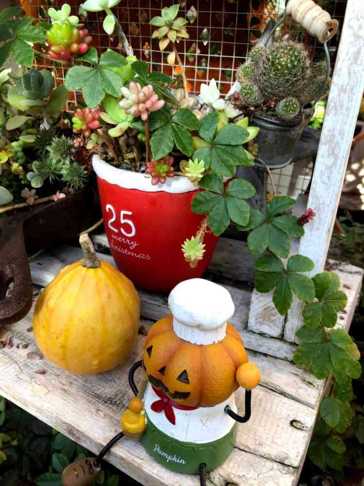 カボチャのコックさんに、多肉さんもピンク色に色づいて\(。˃ ᵕ ˂ )/ ✧*。