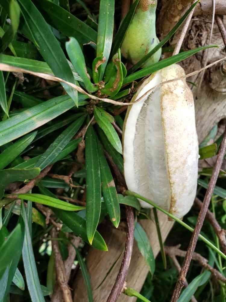 アケビが熟して蓋が開いてた~♪しかし開いたばっかでまだ完全には熟してない模様~。