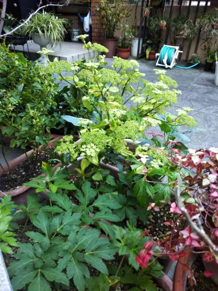 三日前位に撮影。アシタバの葉っぱと花です。前のいえのツルムラサキを教えてくれた人の庭にあります。これも教えてくれました。