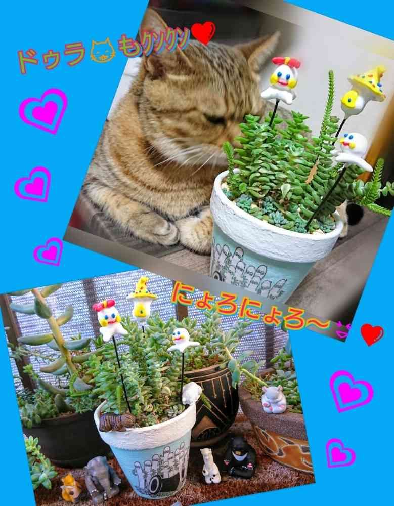 ニョロニョロ鉢に🌵ニョキニョキ〜多肉さん💚ぴったりにやー🐾byドゥラちゃん😄