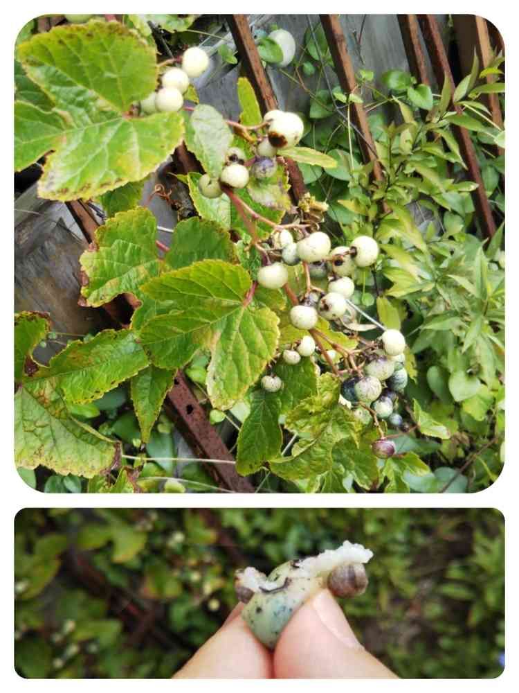 白っぽい果実と薄い水色の果実はジューシーで、指で潰すとしっかりとした種が飛び出してきました。
