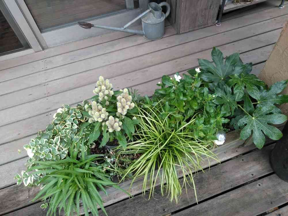 ヤツデの寄せ植えも華やかになりましたね🎶