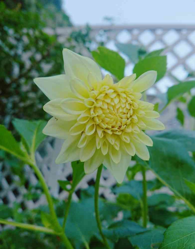 やっとやっと咲きました*\(^o^)/アイボリーのような優しい感じのダリアが咲きました。
