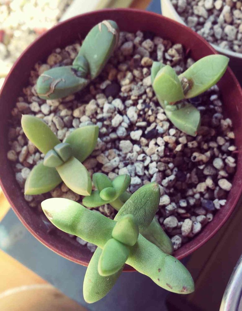 よくシワる方達。シワってこのまま水やっても戻らなくなったら引っこ抜いて水栽培→容易にシワ消える→土に戻す→シワる→水栽培→土に...って繰り返してるんだけどそれでも新葉出して元気です(?)😆で、なんてお名前でしたっけ???2種類ある気がする...