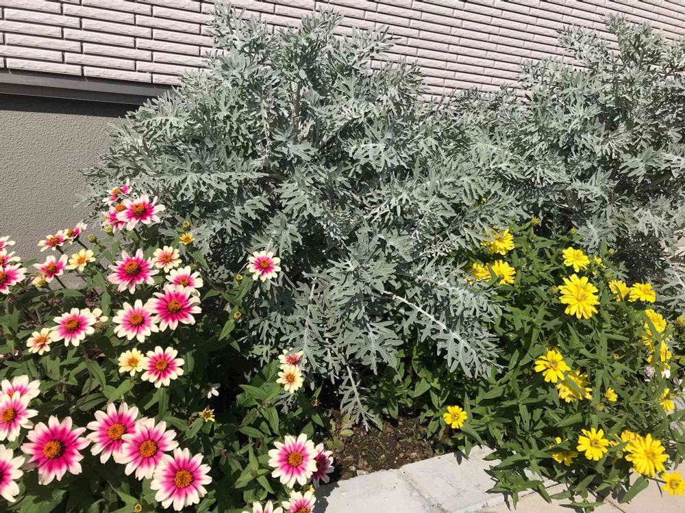 セントーレアさん、花が全く咲く気配なし。葉っぱだけがもりもりしてます。何故でしょう…。