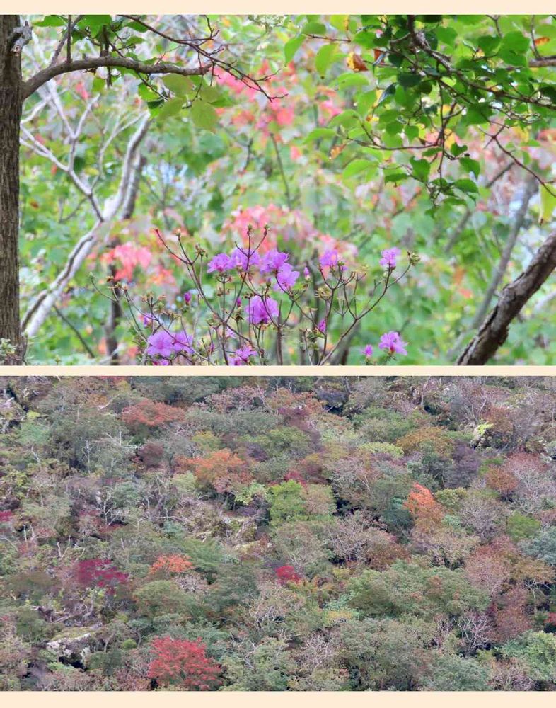 狂い咲きのミヤマキリシマ,ドウダンツツジ紅葉,韓国岳火口の紅葉の投稿画像
