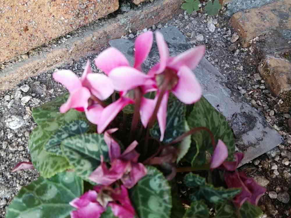 ご近所の玄関前の隙間ガーデンにシクラメンが咲いてた。