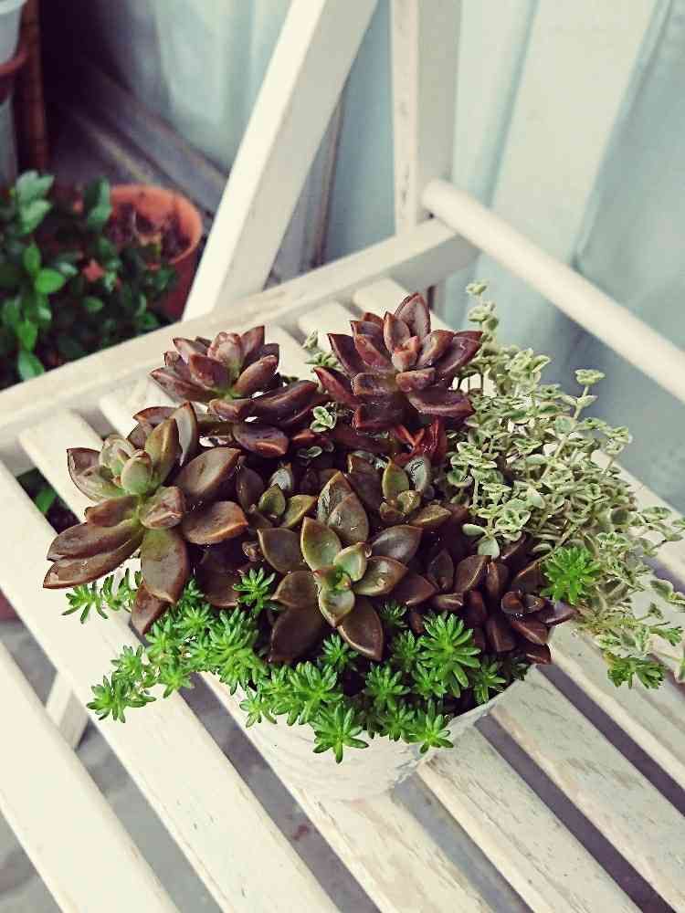 団地のベランダで多肉植物とハーブを主に育てていて、特に多肉の寄せ植えにハマっています 時々自作の陶芸鉢に寄せ植えしています。