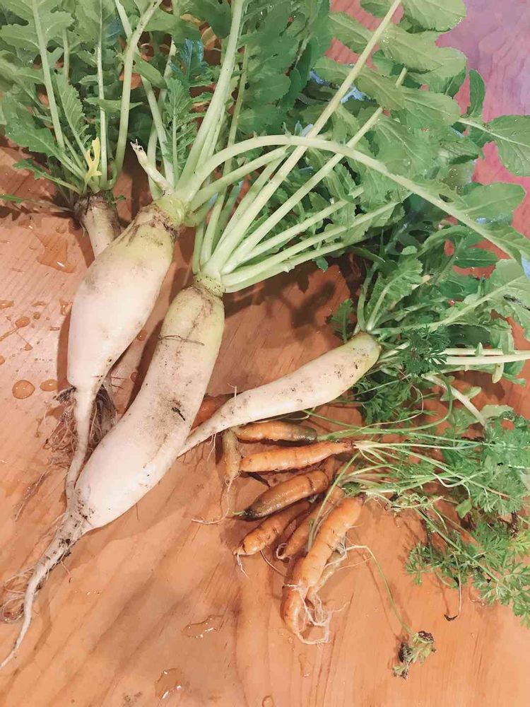 今日は初めてのペットボトル栽培の大根と人参を収穫🥕!