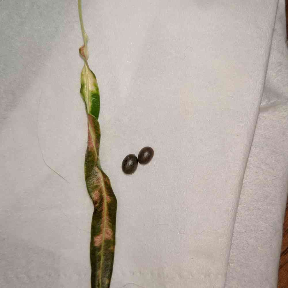 クロトンの種が取れました。いきなり弾け飛んで落ちたので、探すのに手間取ってしまいました。一つの実に3つほど部屋?がありますが、種は一つの実に一個しか入っていないみたいです。