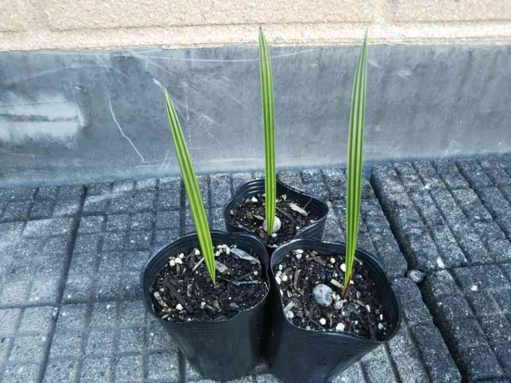 銀葉種でもトゲハクセンヤシと違い発芽直後は緑葉のようです。