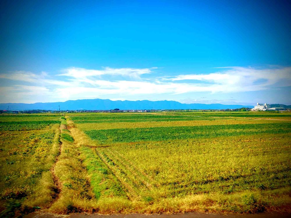 両脇のはるか彼方に山が見えて、辺り一面黄金色の、大地でしたね。