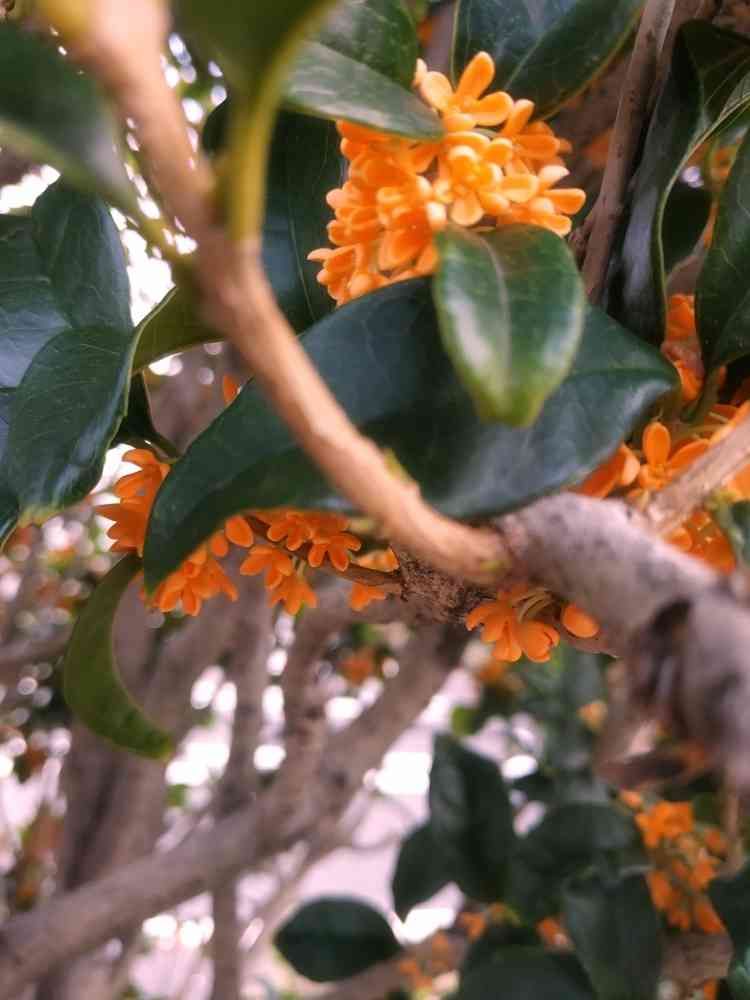 おはようございます♥近所に咲いていました💖いつもは早くにキンモクセイの香りを感じるのですが今年は香りを感じるのが遅かったです♥散っちゃたかなあと思っていましたが香りを感じた時にあぁ咲いているのだなあと嬉しくなりました。とても愛らしい砂糖菓子のような花びらが可愛いなあっていつも思います♥