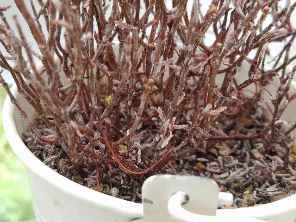 夏に枯れ枯れになっちゃったけど諦めずにお水あげ続けたら、なんか緑の点がでてきた・:*+.(( °ω° ))/.:+