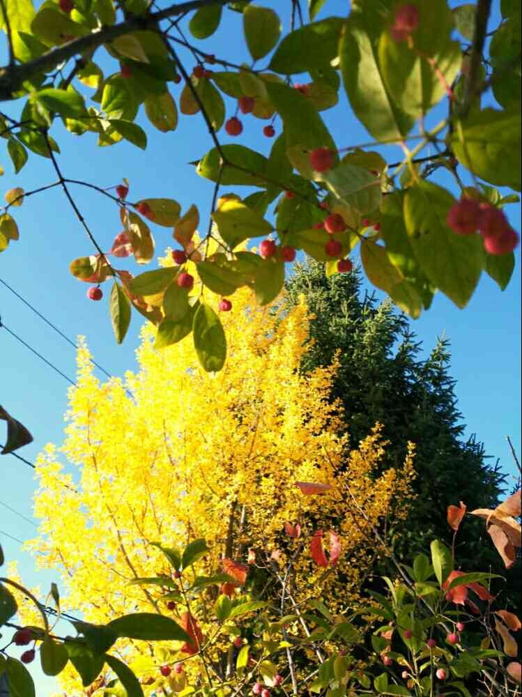 秋の終わりを感じさせる黄色の銀杏と恋の季節の真っ只中にいるような赤い実の対比がとてもいいなぁと思いました😌