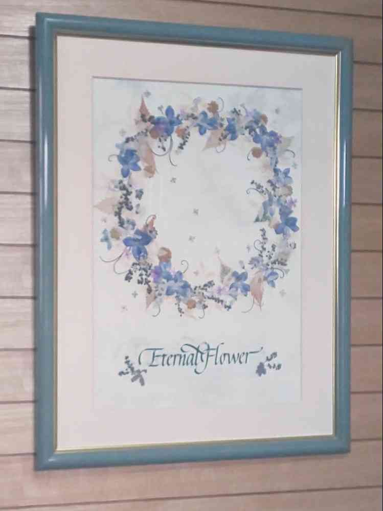 額縁の中はお花の色がなるべく退化しないように真空にしているんですが、長時間紫外線にあたっていれば防ぎきれないですよ~