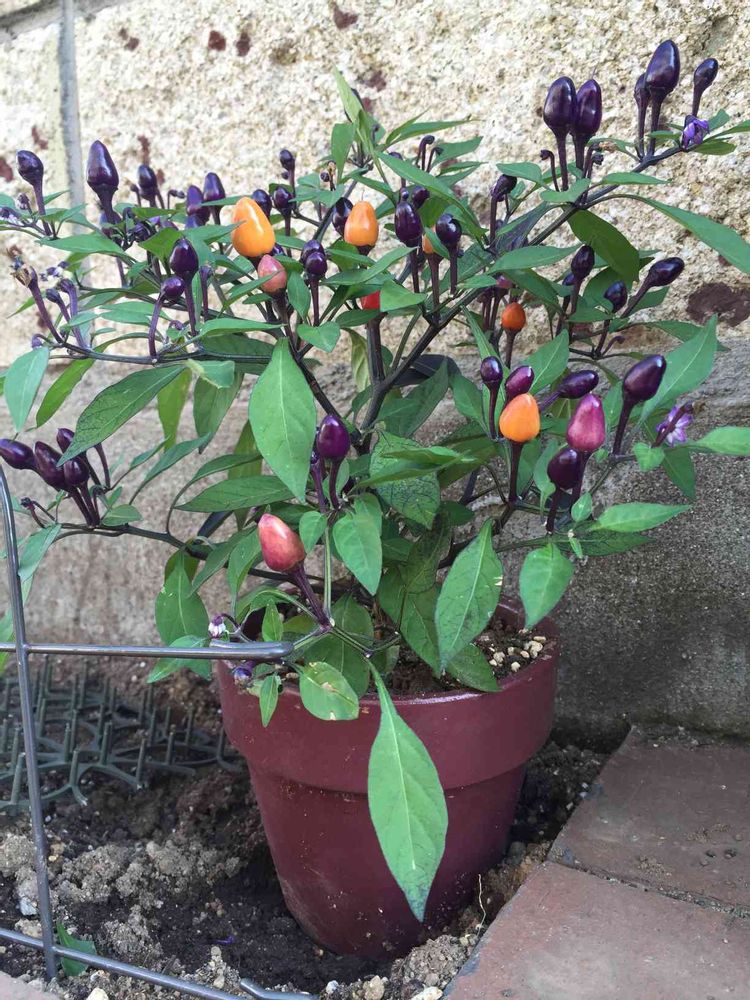 五色トウガラシさん。多肉花壇でひとり頑張ってます。