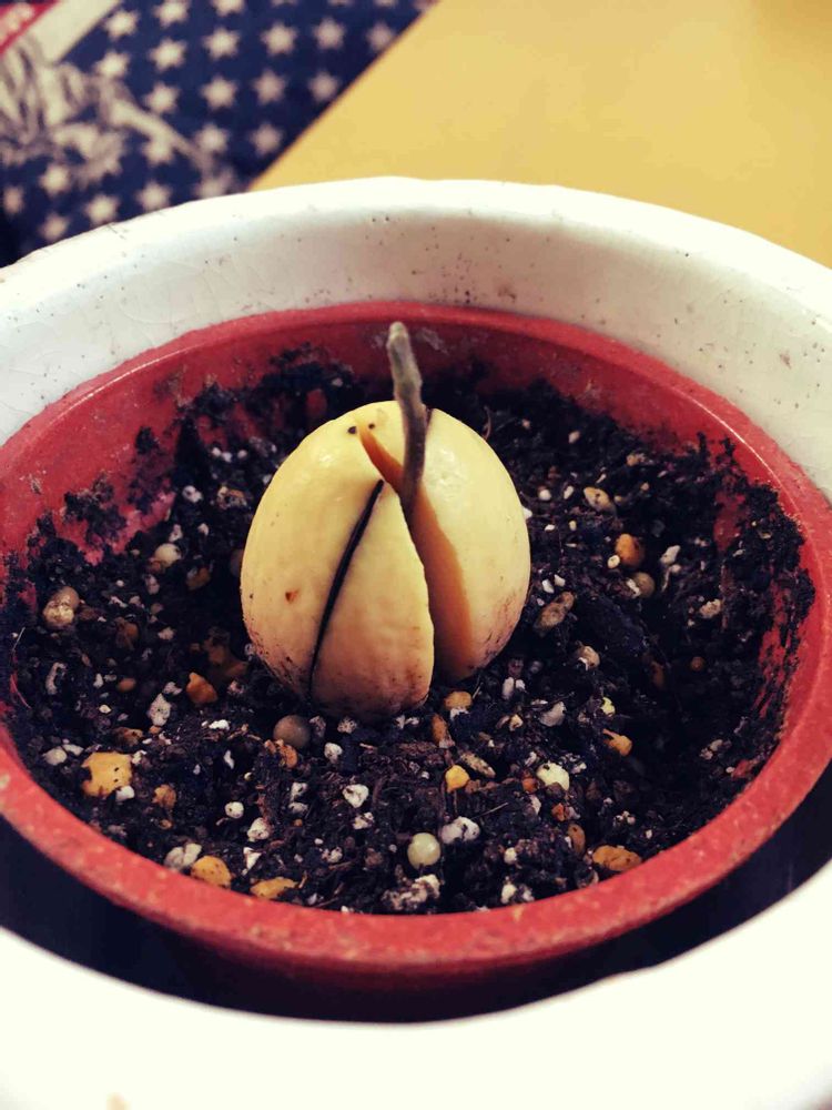 12月初旬に植えたアボカドさん、芽が出てきました♪♪♪