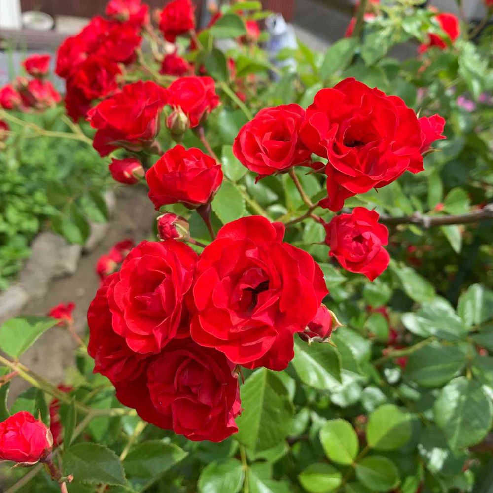 赤いつるバラさん🌹大切に育てられているからキレイなのですね〜