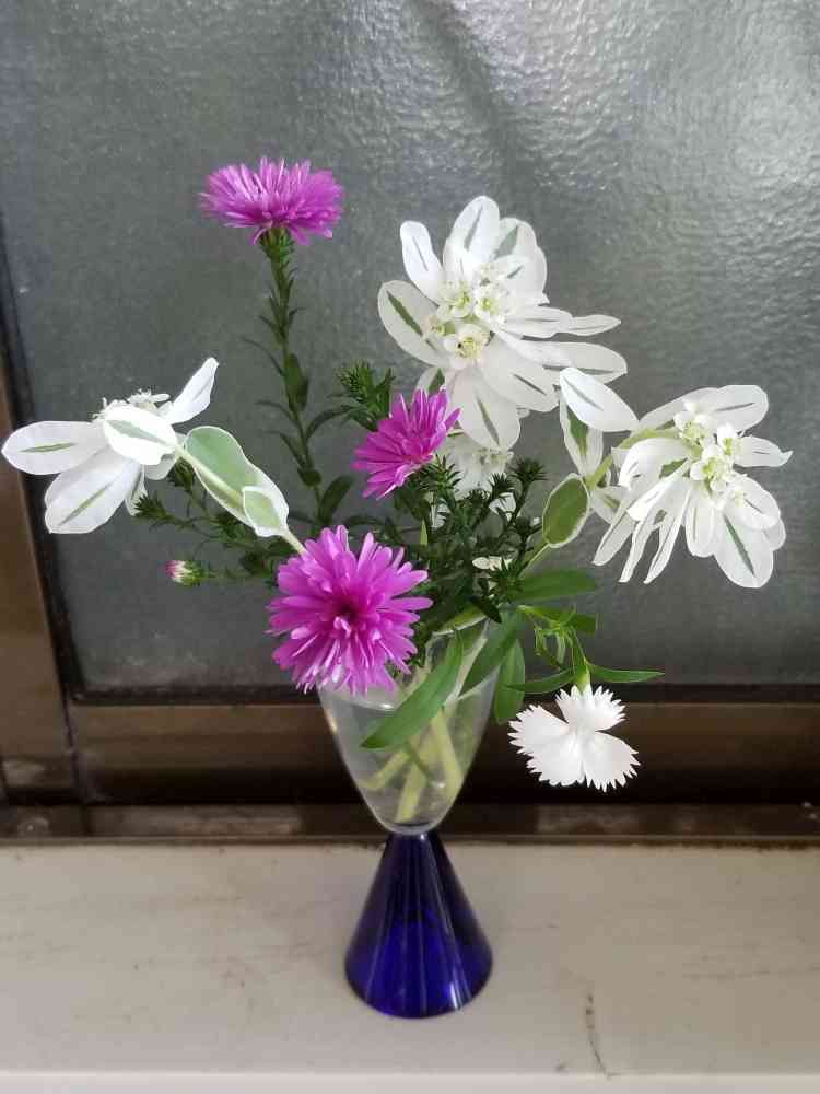 ハツユキソウと宿根アスタービクトリア、カワラナデシコ白のプチ生け花