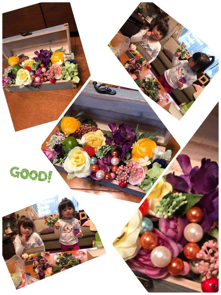 アートフラワーをボックスに入れて飾るやり方は初めて見ました😆