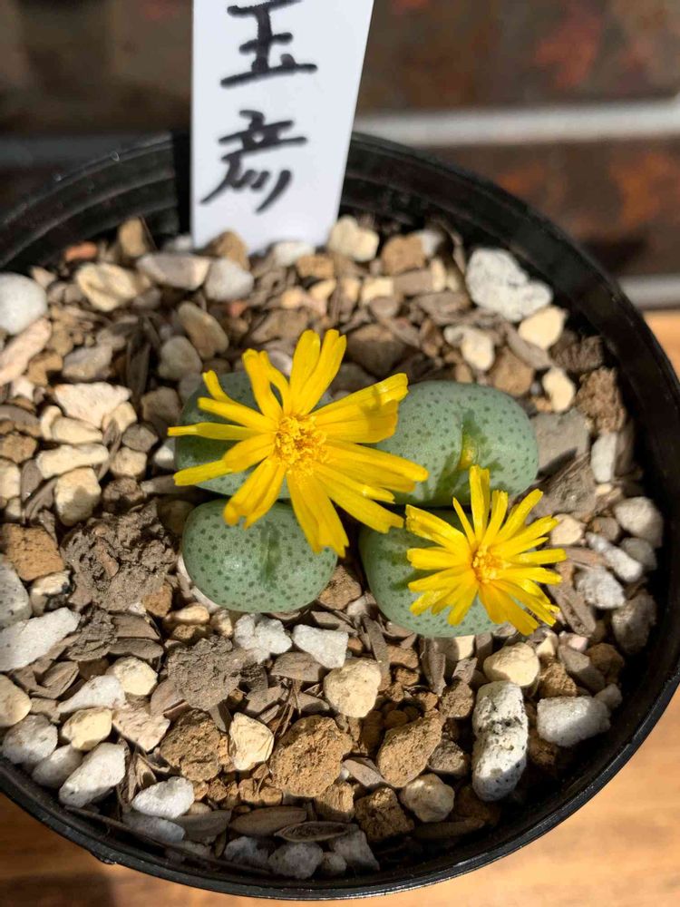 今日は、メセン類にハマり始め、早々に我が家へ狩られてこられて、中々、花芽を持たなかった、コノフィツム 玉彦です😃